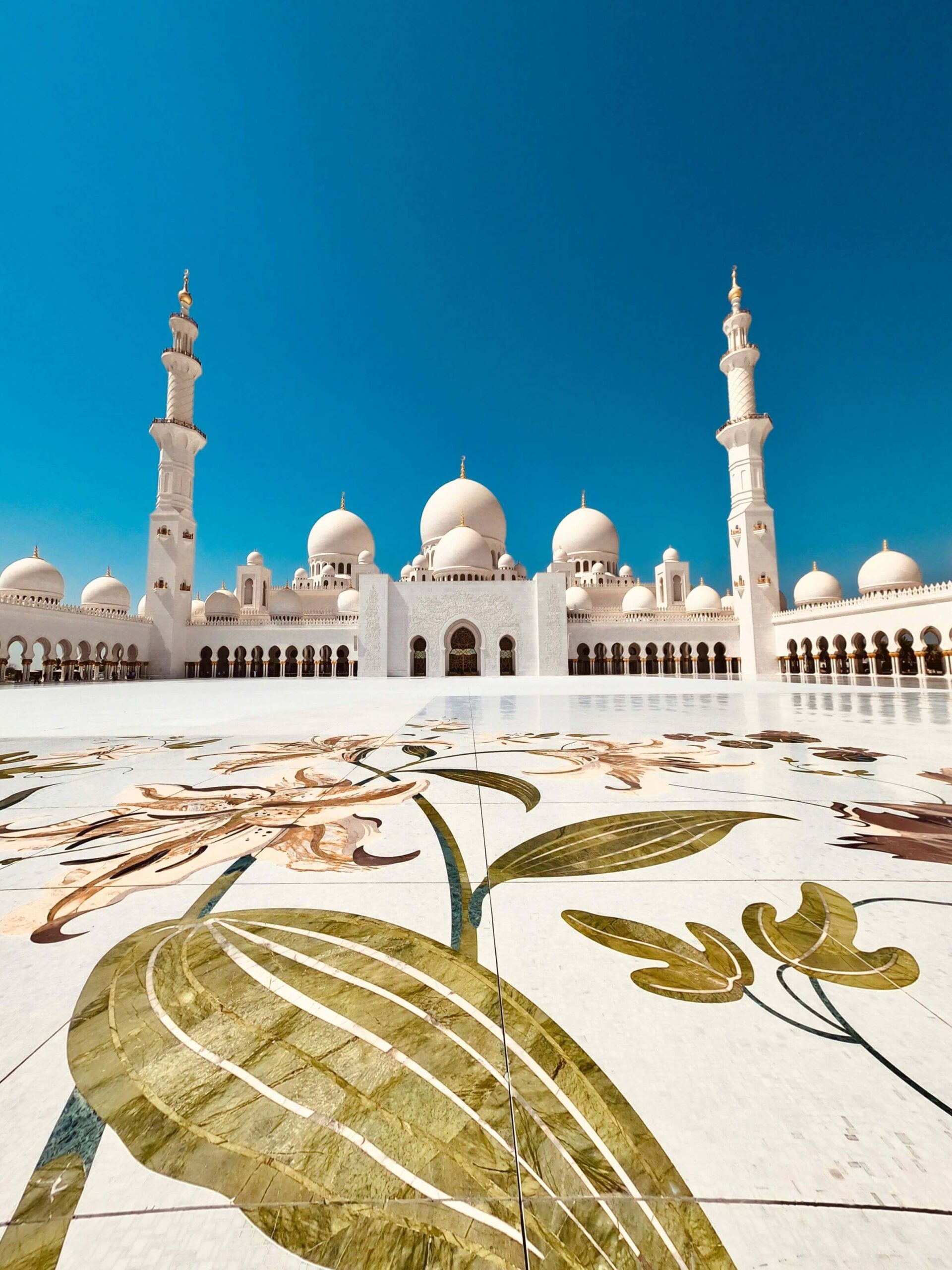 Explore the magnificent Sheikh Zayed Grand Mosque, one of the largest mosques in the world, known for its stunning white marble architecture and beautiful Islamic design.