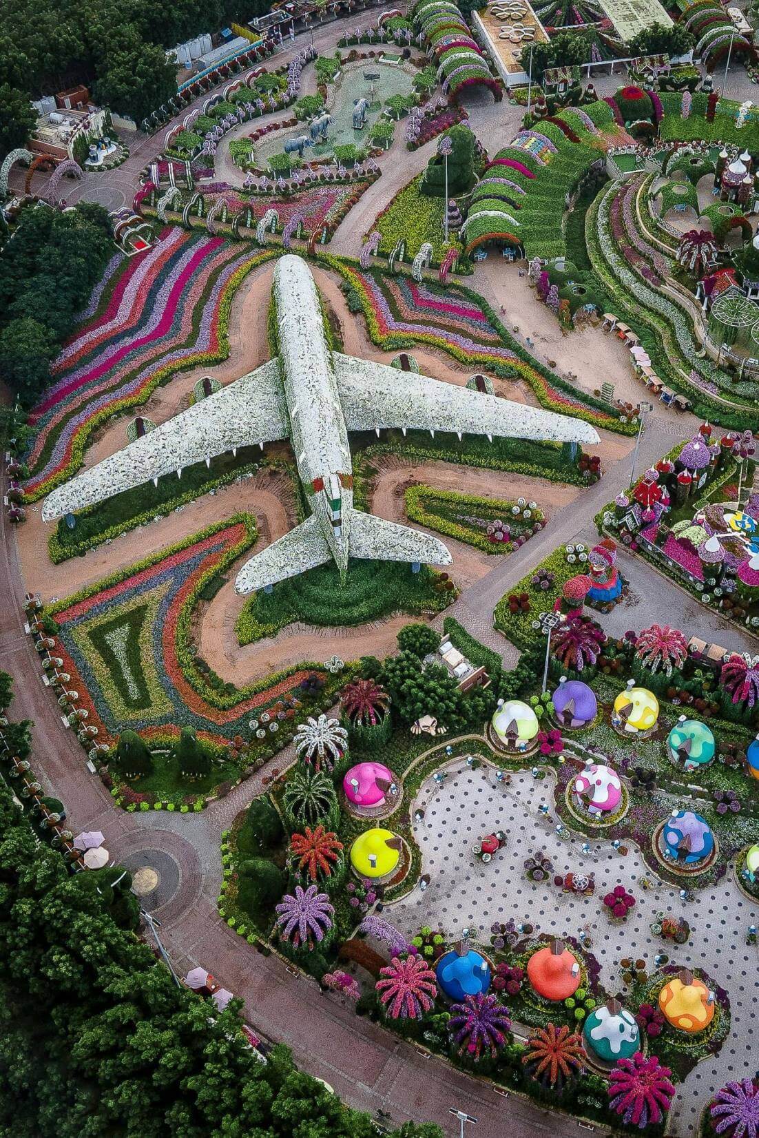 One of the most popular attractions inside the garden is the Emirates A380 Floral Installation, a life-size aircraft structure covered with thousands of flowers.